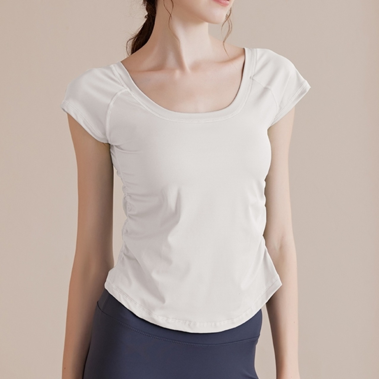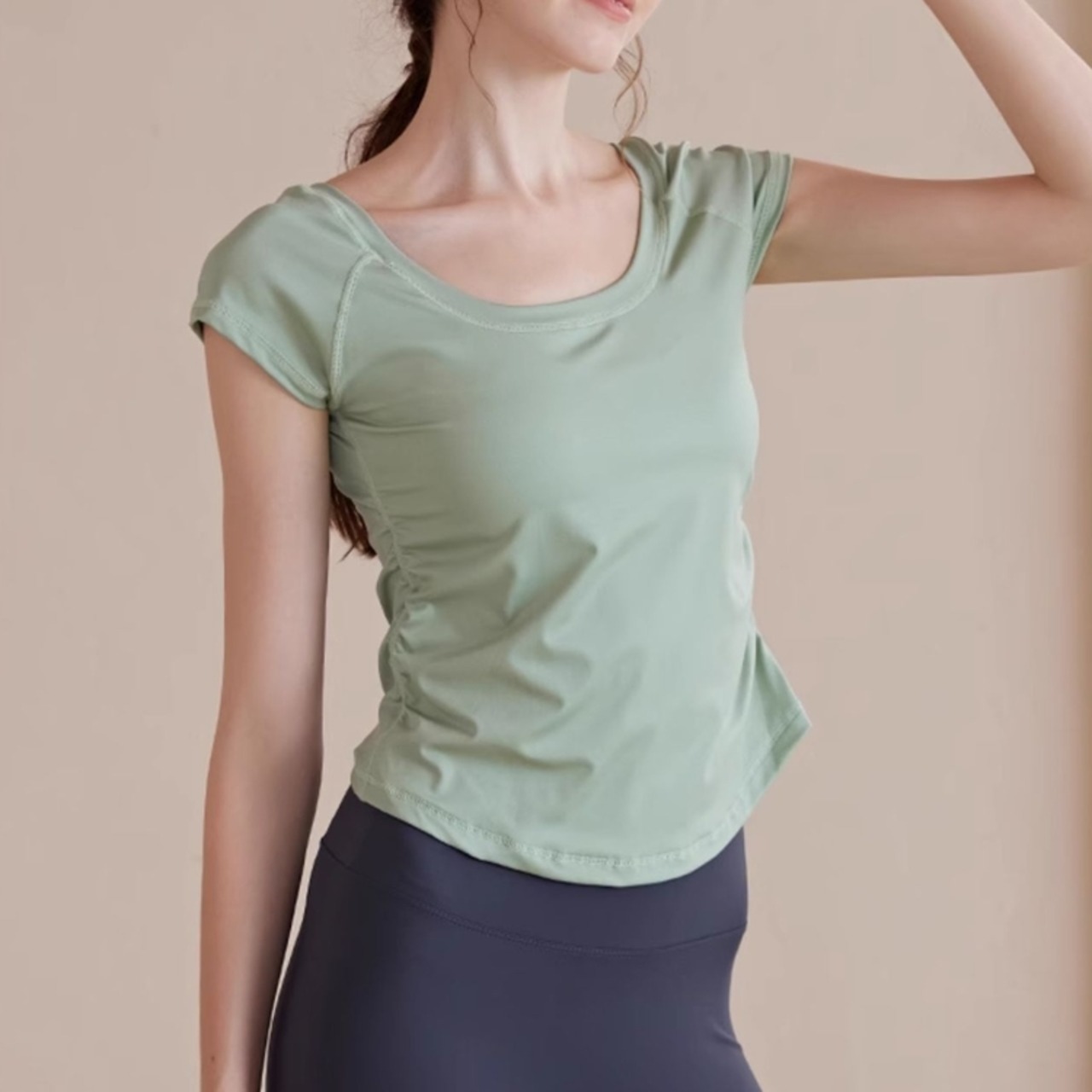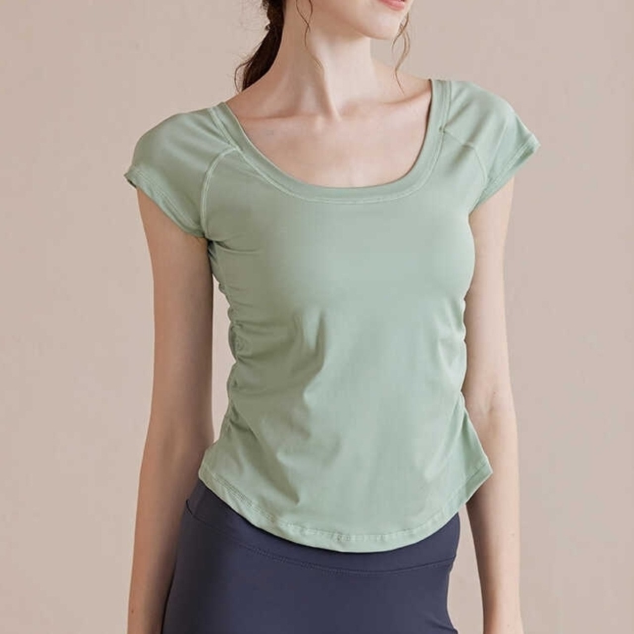 -------------------------------------------------------------------------- いますぐ!LINEお友だち追加で【クーポンGet】 ▶https://shop.99yoga-a.com/blog/2025/02/01/152128 注目!BEST SELLERはこちら ▶https://shop.99yoga-a.com/categories/6928766 -------------------------------------------------------------------------- セミフレアシルエットが体型をカバーしつつ、洗練されたスタイルを演出するトップスです。 短すぎず長すぎない袖丈は、様々なシーンで活躍し、動きやすさも抜群です。 ヨガやピラティスなどの軽い運動から、普段使いまで幅広くお使いいただけます。 □サイズ(cm) 【S】胸囲:74.5 着丈:44 ウエスト:67 【M】胸囲:78.5 着丈:45 ウエスト:71 【L】胸囲:82.5 着丈:46 ウエスト:75 【XL】胸囲:86.5 着丈:47 ウエスト:79 ※海外製品のため1-3cm程度誤差のある場合がございます。 □カラー グリーン ピンク ブラック ホワイト ライトブラウン □素材 75%:ナイロン 25%:ポリウレタン □お届けについて こちらの商品は海外店舗より直接発送となる為、ご入金から1週間〜3週間前後で発送致します。 □注意事項 ・タイミングによっては 商品在庫切れにより注文キャンセルとさせていただく恐れもございますので、予めご了承くださいませ。 ・こちらは輸入品となります。日本製とは検品基準が異なる為、新品未使用品でもごくわずかな汚れや傷がある場合もございます。 ・商品の色味は、お手持ちのスマートフォンの画面によって実物と若干異なる場合がございます。 ・イメージ違いやサイズ等、お客様都合による交換、返品、キャンセルは対応出来かねます。 -------------------------------------------------------------------------- ご購入前にこちらをお読みください →https://shop.99yoga-a.com/about --------------------------------------------------------------------------