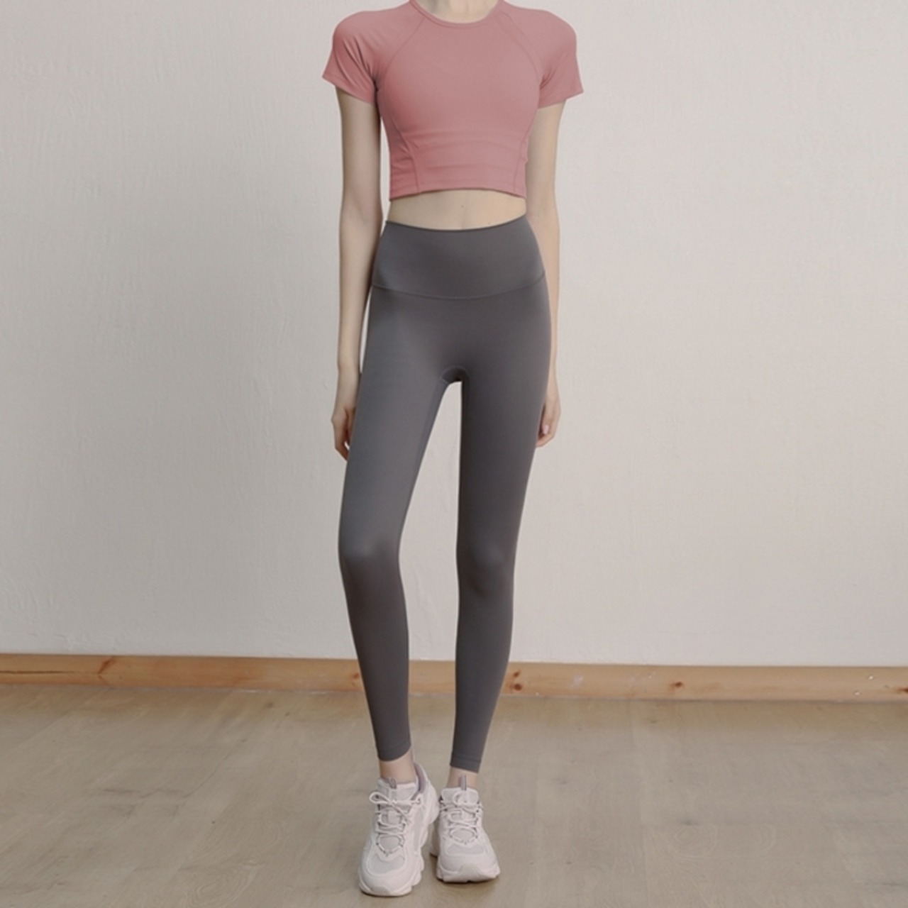 ハイウエストデザインで、お腹周りをすっきりと見せてくれるアンクル丈レギンス。