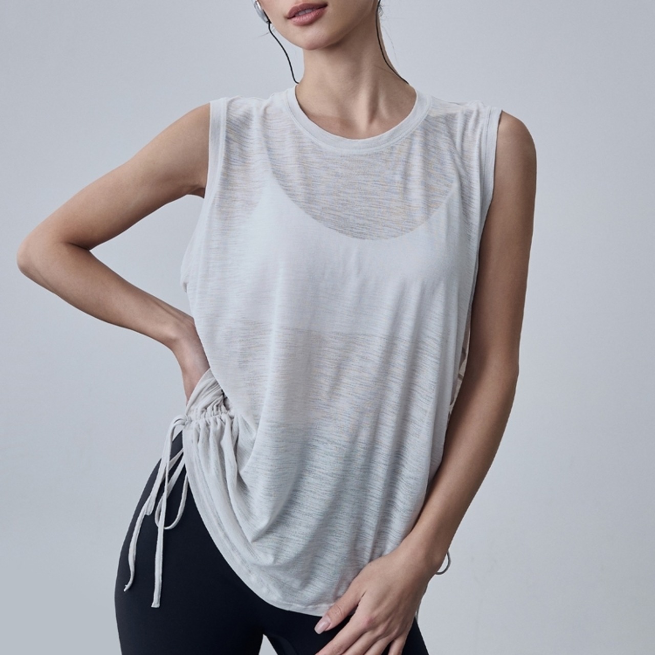 ゆったりとしたシルエットが魅力のノースリーブトップス。