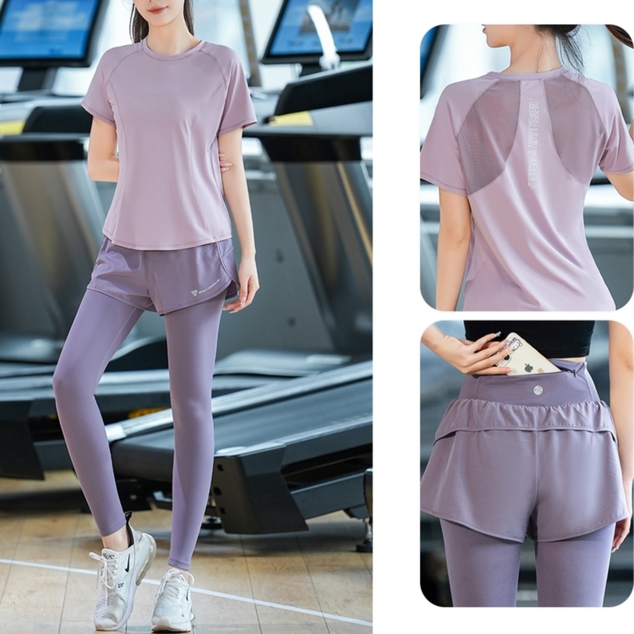 -------------------------------------------------------------------------- いますぐ!LINEお友だち追加で【クーポンGet】 ▶https://shop.99yoga-a.com/blog/2025/02/01/152128 注目!BEST SELLERはこちら ▶https://shop.99yoga-a.com/categories/6928766 -------------------------------------------------------------------------- フィットネスシーンを快適に彩るツーピース。メッシュ切り替えのショートパンツがレギンスと一体化し、アクティブな動きにも対応。 トップスは程よく体にフィットするクロップド丈で、どんな動きも邪魔しません。 レギンスはハイウエスト仕様なので、お腹も安心。ワークアウトに集中できます。 □サイズ(cm) トップス 【S】着丈:56 胸囲:86 ウエスト:82 【M】着丈:57.5 胸囲:90 ウエスト:86 【L】着丈:59 胸囲:94 ウエスト:90 【XL】着丈:60.5 胸囲:98 ウエスト:94 【2XL】着丈:62 胸囲:102 ウエスト:98 パンツ 【S】ヒップ:101 ウエスト:56 パンツ丈:87 【M】ヒップ:105 ウエスト:60 パンツ丈:88.5 【L】ヒップ:109 ウエスト:64 パンツ丈:90 【XL】ヒップ:113 ウエスト:68 パンツ丈:91.5 【2XL】ヒップ:117 ウエスト:72 パンツ丈:93 ※海外製品のため1-3cm程度誤差のある場合がございます。 □カラー ホワイト/ブラック ホワイト/グレー パープル/ブラック パープル/グレー パープル/パープル ブラック/ブラック ブラック/グレー ブラック/パープル □お届けについて こちらの商品は海外店舗より直接発送となる為、ご入金から1週間〜3週間前後で発送致します。 □注意事項 ・タイミングによっては 商品在庫切れにより注文キャンセルとさせていただく恐れもございますので、予めご了承くださいませ。 ・こちらは輸入品となります。日本製とは検品基準が異なる為、新品未使用品でもごくわずかな汚れや傷がある場合もございます。 ・商品の色味は、お手持ちのスマートフォンの画面によって実物と若干異なる場合がございます。 ・イメージ違いやサイズ等、お客様都合による交換、返品、キャンセルは対応出来かねます。 -------------------------------------------------------------------------- ご購入前にこちらをお読みください →https://shop.99yoga-a.com/about --------------------------------------------------------------------------