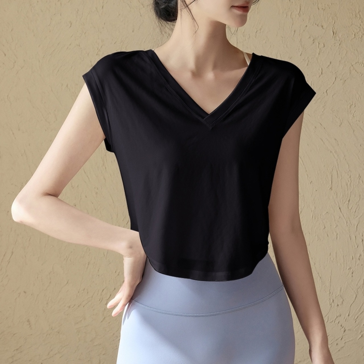 -------------------------------------------------------------------------- いますぐ!LINEお友だち追加で【クーポンGet】 ▶https://shop.99yoga-a.com/blog/2025/02/01/152128 注目!BEST SELLERはこちら ▶https://shop.99yoga-a.com/categories/6928766 -------------------------------------------------------------------------- Vネックのクロップド丈Tシャツは、アクティブな動きにも対応できるデザインです。 身体にフィットするシルエットながら、動きを制限することなく、自由自在に過ごせます。 どんなボトムスとも合わせやすく、デイリーユースに最適です。 □サイズ(cm) 【S】胸囲:46.5 着丈:36.7 裾まわり:44.5 【M】胸囲:48.5 着丈:37.5 裾まわり:46.5 【L】胸囲:50.5 着丈:38.3 裾まわり:48.5 ※キャミソールインナーは付属しません ※海外製品のため1-3cm程度誤差のある場合がございます。 □カラー ホワイト ブルー ピンク ブラック □素材 ポリエステル ポリウレタン □お届けについて こちらの商品は海外店舗より直接発送となる為、ご入金から1週間〜3週間前後で発送致します。 □注意事項 ・タイミングによっては 商品在庫切れにより注文キャンセルとさせていただく恐れもございますので、予めご了承くださいませ。 ・こちらは輸入品となります。日本製とは検品基準が異なる為、新品未使用品でもごくわずかな汚れや傷がある場合もございます。 ・商品の色味は、お手持ちのスマートフォンの画面によって実物と若干異なる場合がございます。 ・イメージ違いやサイズ等、お客様都合による交換、返品、キャンセルは対応出来かねます。 -------------------------------------------------------------------------- ご購入前にこちらをお読みください →https://shop.99yoga-a.com/about --------------------------------------------------------------------------
