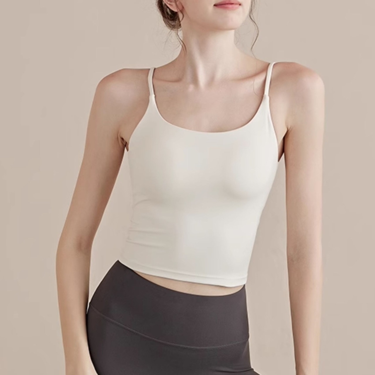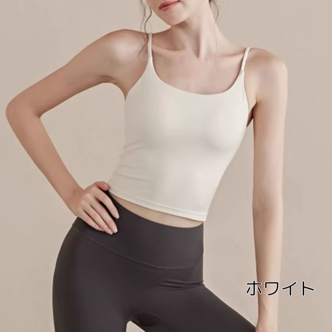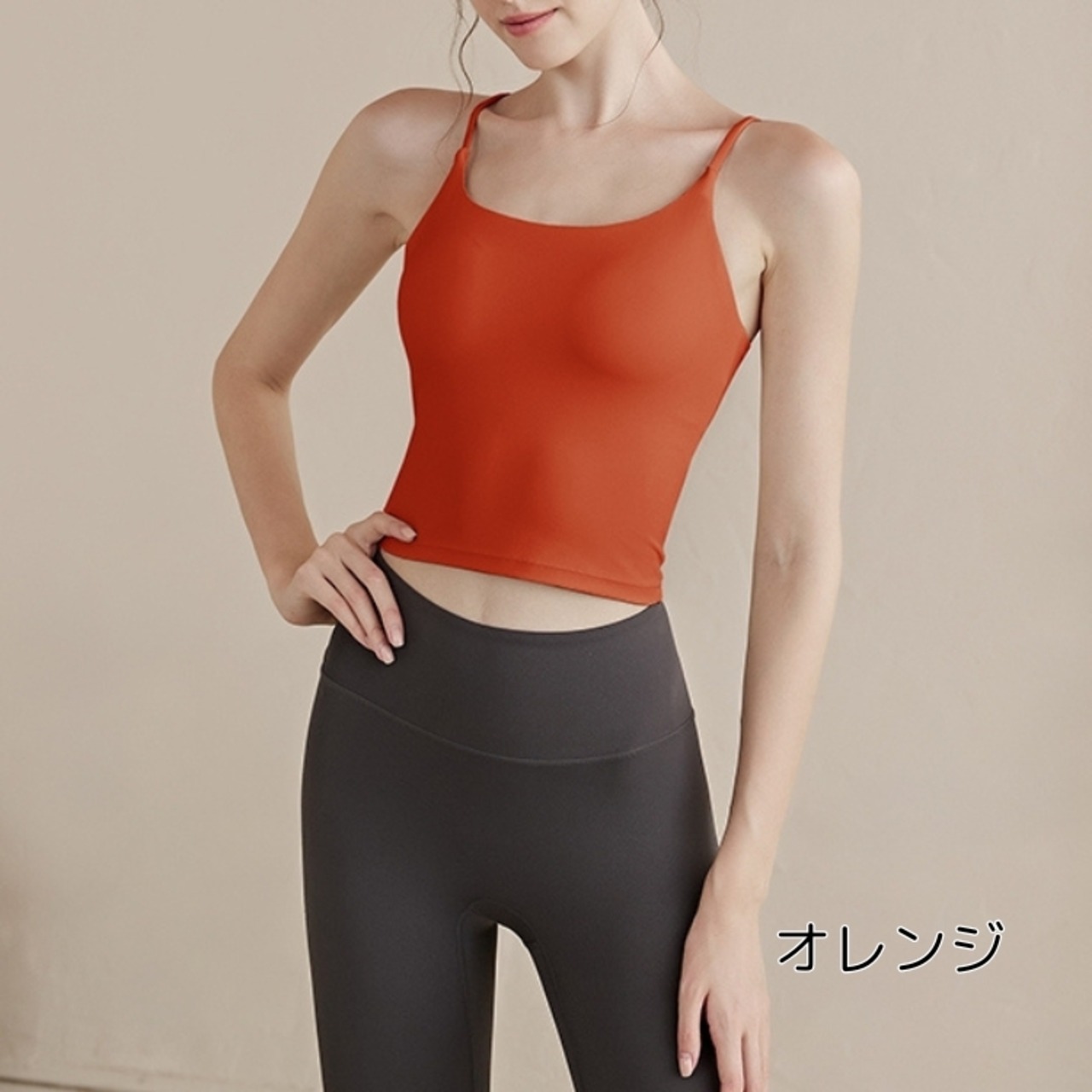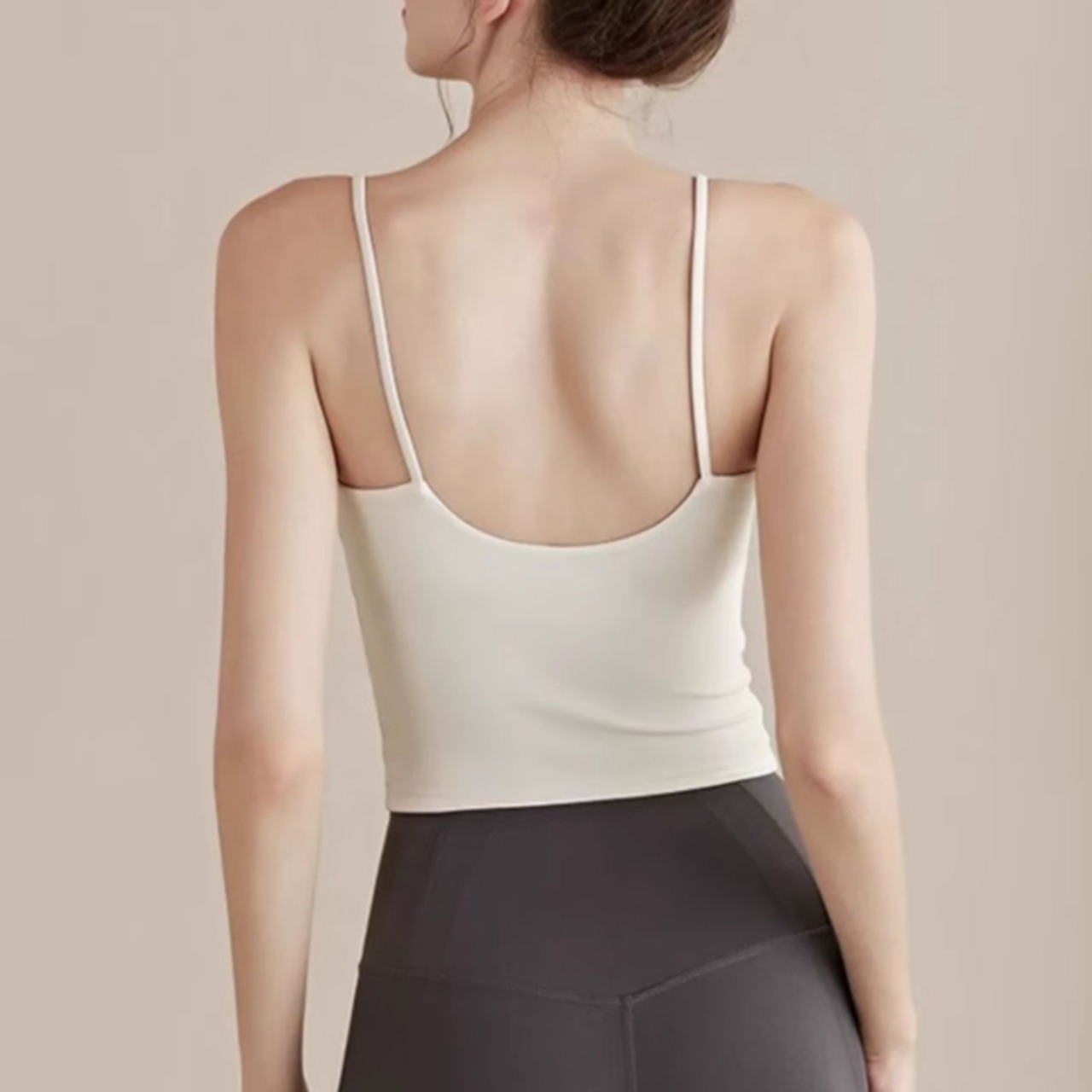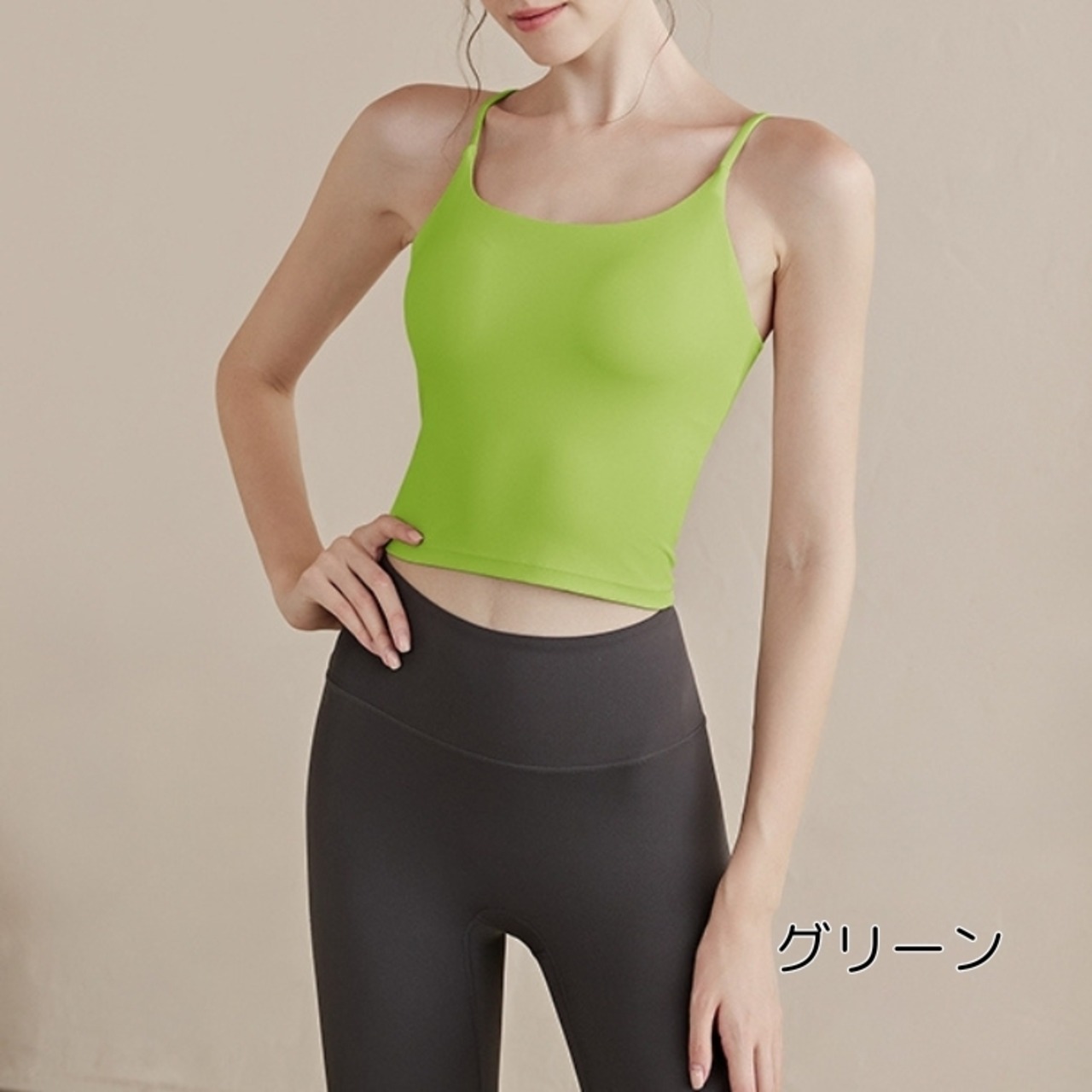バックオープンデザインで、後ろ姿も美しく、アクティブな動きにも対応できるスポーツキャミソールです。