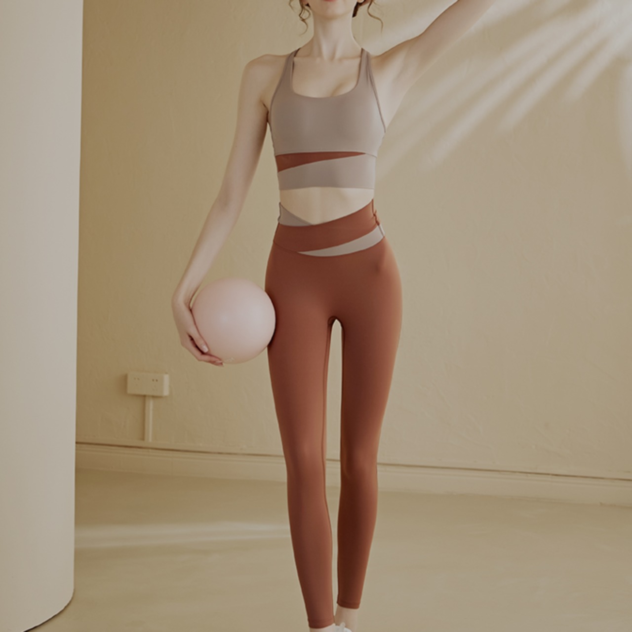ツートーン クロップド丈ブラトップ レギンスセットアップ *5col* 00242 ツートーンのクトップド丈ブラトップとアシンメトリーなデザインが魅力的なレギンスパンツのセットアップです。 ハイウエスト仕様で、お腹周りをすっきりと見せるだけでなく、ショートトップスとの相性も抜群です。 アクティブな動きにも対応できる、快適な着心地をぜひ体感してください。 ワークアウトやヨガ、普段使いと、様々なシーンで活躍します。 □サイズ トップス 【S】胸囲:68cm 着丈:30cm アンダー:54cm 【M】胸囲:72cm 着丈:31cm アンダー:58cm 【L】胸囲:76cm 着丈:32cm アンダー:62cm 【XL】胸囲:80cm 着丈:33cm アンダー:66cm レギンス 【S】ウエスト:50cm ヒップ:72cm パンツ丈:72cm 【M】ウエスト:54cm ヒップ:76cm パンツ丈:76cm 【L】ウエスト:58cm ヒップ:80cm パンツ丈:80cm 【XL】ウエスト:62cm ヒップ:84cm パンツ丈:84cm ※海外製品のため1-3cm程度誤差のある場合がございます。 □カラー ブラウン グリーン ブルー パープル ブラック □素材 ナイロン ポリウレタン □お届けについて こちらの商品は海外店舗より直接発送となる為、ご入金から1週間〜3週間前後で発送致します。 □注意事項 ・タイミングによっては 商品在庫切れにより注文キャンセルとさせていただく恐れもございますので、予めご了承くださいませ。 ・こちらは輸入品となります。日本製とは検品基準が異なる為、新品未使用品でもごくわずかな汚れや傷がある場合もございます。 ・商品の色味は、お手持ちのスマートフォンの画面によって実物と若干異なる場合がございます。 ・イメージ違いやサイズ等、お客様都合による交換、返品、キャンセルは対応出来かねます。 ———————————— ご購入前にこちらをお読みください →https://shop.99yoga-a.com/about ————————————