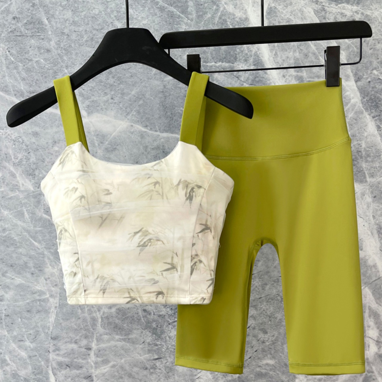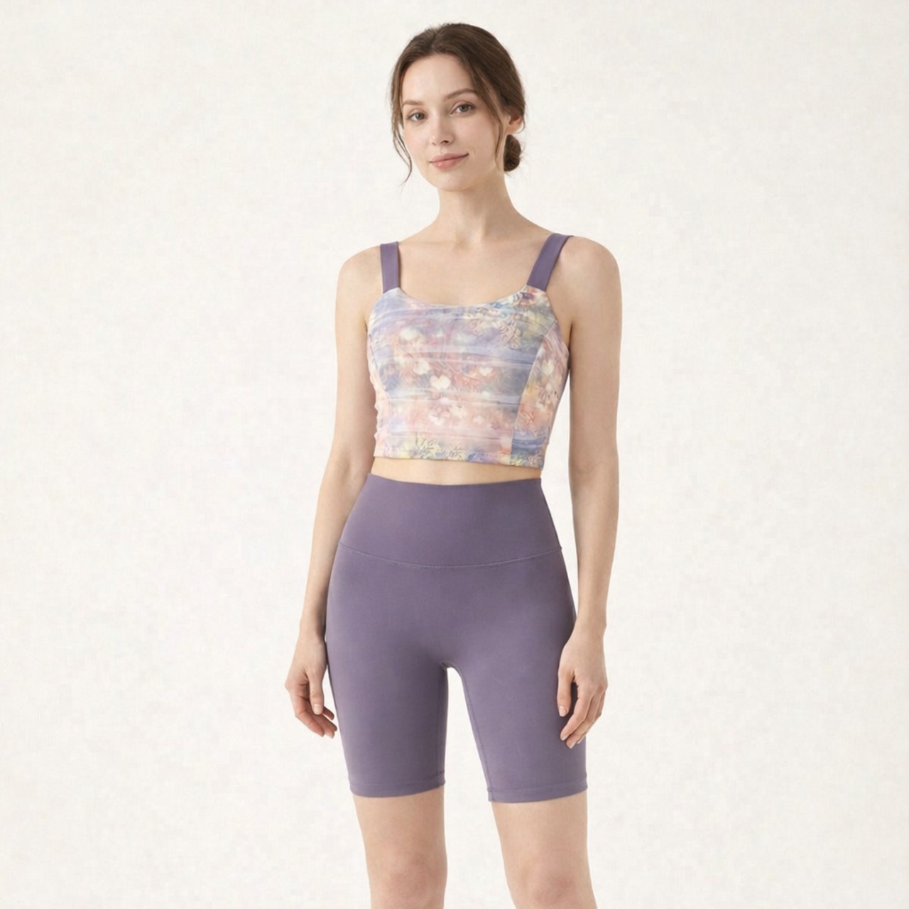 スポーツブラ ハーフレギンス ツーピース *6col* 00233 アクティブな毎日を彩る、おしゃれで機能的なツーピース。 クロップド丈のトップスは、どんな動きにも制限なくフィットし自由自在。 ハイウエストのレギンスは、お腹周りをすっきりと見せてくれるだけでなく、激しい動きにも対応できるサポート力も兼ね備えています。 ショート丈トップスとの組み合わせも、お腹が見えにくいデザインです。ワークアウトに集中できる、快適な着心地をぜひご体験ください。 □サイズ トップス 【S】胸囲:70cm 着丈:36cm アンダー:54cm 【M】胸囲:74cm 着丈:37cm アンダー:58cm 【L】胸囲:78cm 着丈:38cm アンダー:62cm 【XL】胸囲:82cm 着丈:39cm アンダー:66cm パンツ 【S】ウエスト:51cm ヒップ:66cm パンツ丈:47cm 【M】ウエスト:55cm ヒップ:70cm パンツ丈:48cm 【L】ウエスト:59cm ヒップ:74cm パンツ丈:49cm 【XL】ウエスト:63cm ヒップ:78cm パンツ丈:50cm □カラー ピンク+パープル ピンク+グリーン グリーン+グリーン ホワイト+グリーン パープル+パープル レッド+レッド □素材 77%:ポリエステル 23%:ポリウレタン □お届けについて こちらの商品は海外店舗より直接発送となる為、ご入金から1週間〜3週間前後で発送致します。 □注意事項 ・タイミングによっては 商品在庫切れにより注文キャンセルとさせていただく恐れもございますので、予めご了承くださいませ。 ・こちらは輸入品となります。日本製とは検品基準が異なる為、新品未使用品でもごくわずかな汚れや傷がある場合もございます。 ・商品の色味は、お手持ちのスマートフォンの画面によって実物と若干異なる場合がございます。 ・イメージ違いやサイズ等、お客様都合による交換、返品、キャンセルは対応出来かねます。 ———————————— ご購入前にこちらをお読みください →https://shop.99yoga-a.com/about ————————————