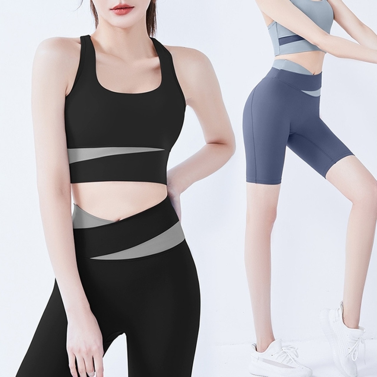 ツートーン クロップド丈ブラトップ ハーフレギンスセットアップ *5col* 00243 クロップド丈のブラトップとハーフ丈レギンスのセットアップです。 トップスのクロップド丈デザインは、動きやすさを確保しながらスタイリッシュなシルエットを実現。 ハイウエスト仕様のレギンスは、お腹回りをカバーし、あらゆる体勢でも安心感を提供します。 ワークアウトからカジュアルなシーンまで、幅広く活躍するアイテムです。 □サイズ トップス 【S】胸囲:64cm 着丈:32cm アンダー:52cm 肩幅:30.6cm 【M】胸囲:67cm 着丈:34cm アンダー:56cm 肩幅:32cm 【L】胸囲:70cm 着丈:37cm アンダー:60cm 肩幅:33.4cm 【XL】胸囲:74cm 着丈:38cm アンダー:64cm 肩幅:34.8cm 【2XL】胸囲:78cm 着丈:39cm アンダー:68cm 肩幅:36.2cm レギンス 【S】ウエスト:50cm ヒップ:68cm パンツ丈:42cm 【M】ウエスト:56cm ヒップ:72cm パンツ丈:43cm 【L】ウエスト:58cm ヒップ:78cm パンツ丈:44cm 【XL】ウエスト:63cm ヒップ:84cm パンツ丈:45cm 【2XL】ウエスト:68cm ヒップ:88cm パンツ丈:46cm ※海外製品のため1-3cm程度誤差のある場合がございます。 □カラー ブルー グリーン パープル オレンジ ブラック □素材 ナイロン ポリウレタン □お届けについて こちらの商品は海外店舗より直接発送となる為、ご入金から1週間〜3週間前後で発送致します。 □注意事項 ・タイミングによっては 商品在庫切れにより注文キャンセルとさせていただく恐れもございますので、予めご了承くださいませ。 ・こちらは輸入品となります。日本製とは検品基準が異なる為、新品未使用品でもごくわずかな汚れや傷がある場合もございます。 ・商品の色味は、お手持ちのスマートフォンの画面によって実物と若干異なる場合がございます。 ・イメージ違いやサイズ等、お客様都合による交換、返品、キャンセルは対応出来かねます。 ———————————— ご購入前にこちらをお読みください →https://shop.99yoga-a.com/about ————————————