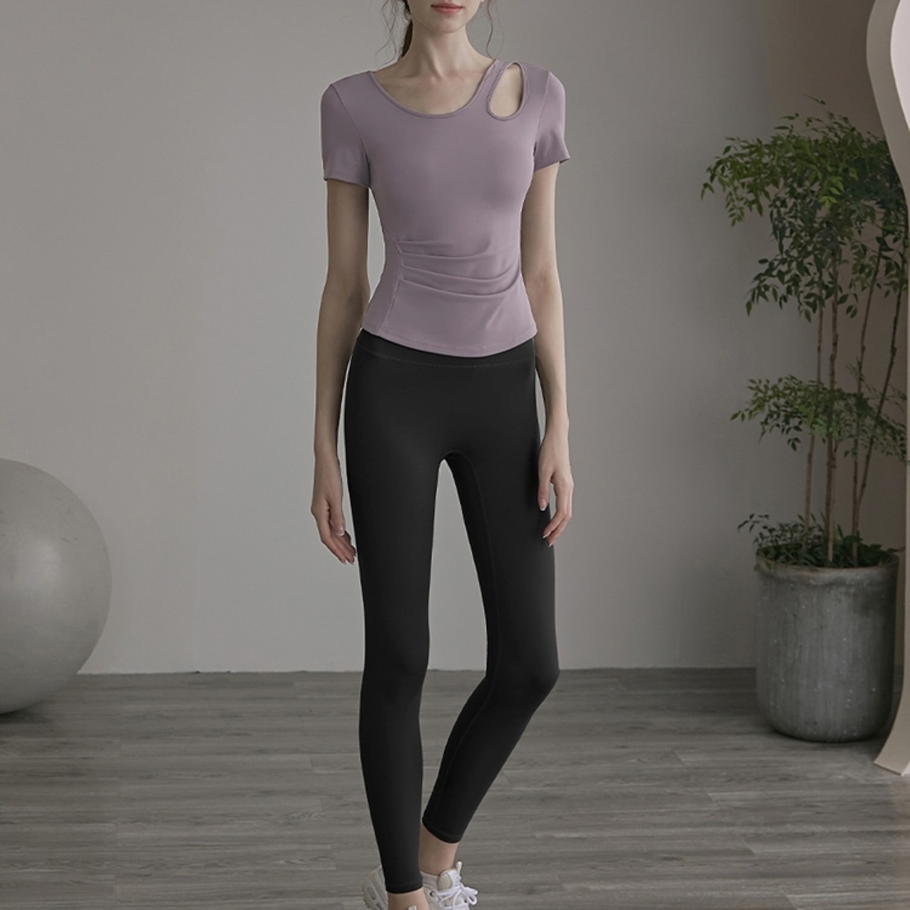 カットアウトトップス 9分丈レギンス セットアップ *6col* Y0262 身体にフィットするショートスリーブのトップスと9分丈レギンスのセットアップ。 カットアウトデザインがワンポイントとなり、シンプルなデザインながら洗練された印象を与えます。 トップスはクロップド丈で、アクティブな動きにも対応。 レギンスはハイウエスト仕様なので、お腹周りをカバーし、安心してワークアウトに集中できます。 □サイズ トップス 【S】胸囲:73.5cm 着丈:44cm 裾まわり:74m 【M】胸囲:77.5cm 着丈:45cm 裾まわり:78m 【L】胸囲:81.5cm 着丈:46cm 裾まわり:82m 【XL】胸囲:85.5cm 着丈:47cm 裾まわり:86m レギンス 【S】ウエスト:48cm ヒップ:66cm パンツ丈:83.5cm 【M】ウエスト:52cm ヒップ:70cm パンツ丈:85cm 【L】ウエスト:56cm ヒップ:74cm パンツ丈:86.5cm 【XL】ウエスト:60cm ヒップ:78cm パンツ丈:98cm ※海外製品のため1-3cm程度誤差のある場合がございます。 □カラー アイボリー×ブルー アイボリー×グレー アイボリー×ブラック パープル×グレー パープル×ブルーグレー パープル×ブラック □素材 表地 80%:ナイロン 20%:ポリウレタン 裏地 84%:ナイロン 16%:ポリウレタン □お届けについて こちらの商品は海外店舗より直接発送となる為、ご入金から1週間〜3週間前後で発送致します。 □注意事項 ・タイミングによっては 商品在庫切れにより注文キャンセルとさせていただく恐れもございますので、予めご了承くださいませ。 ・こちらは輸入品となります。日本製とは検品基準が異なる為、新品未使用品でもごくわずかな汚れや傷がある場合もございます。 ・商品の色味は、お手持ちのスマートフォンの画面によって実物と若干異なる場合がございます。 ・イメージ違いやサイズ等、お客様都合による交換、返品、キャンセルは対応出来かねます。 ———————————— ご購入前にこちらをお読みください →https://shop.99yoga-a.com/about ————————————