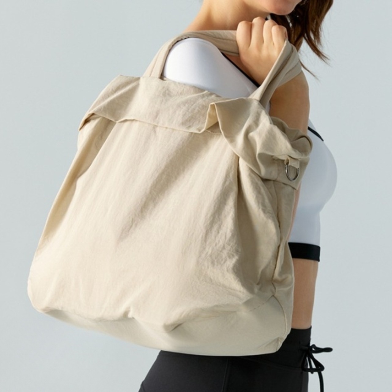 ストラップ付き 折り返しデザイン 2WAYトートバッグ *5col* Y0283 軽やかな持ち運びと収納力を両立した2WAYバッグ。 巾着型なので、荷物の出し入れもスムーズ。ジムやヨガスタジオへの行き帰りだけでなく、普段使いにも活躍します。 手提げと肩掛けの2WAY仕様で、その日のスタイルや気分に合わせて使い分けが可能。 コンパクトに折り畳んで収納することもできます。 □サイズ 32cm×35cm×18cm ハンドル:12cm ※海外製品のため1-3cm程度誤差のある場合がございます。 □カラー イエロー アイボリー カーキグリーン ワインレッド ブラック □素材 主素材:ナイロン □重さ 0.32kg □機能 金属製ファスナー 取り外し可能肩紐付き 3インナーポケット □お届けについて こちらの商品は海外店舗より直接発送となる為、ご入金から1週間〜3週間前後で発送致します。 □注意事項 ・タイミングによっては 商品在庫切れにより注文キャンセルとさせていただく恐れもございますので、予めご了承くださいませ。 ・こちらは輸入品となります。日本製とは検品基準が異なる為、新品未使用品でもごくわずかな汚れや傷がある場合もございます。 ・商品の色味は、お手持ちのスマートフォンの画面によって実物と若干異なる場合がございます。 ・イメージ違いやサイズ等、お客様都合による交換、返品、キャンセルは対応出来かねます。 ———————————— ご購入前にこちらをお読みください →https://shop.99yoga-a.com/about ————————————