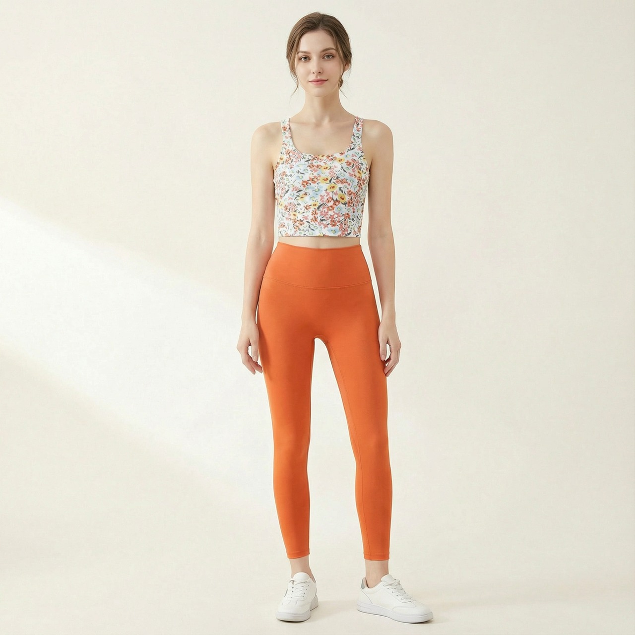マルチプリント キャミソールトップス レギンスセットアップ *7col* Y0288 華やかな花柄プリントのキャミソールと、ワントーンがシンプルなハイウエストレギンスのセットです。 クロップド丈のトップスは、アクティブな動きにも対応し、ハイウエストのレギンスは、お腹周りをカバーしながらスタイルアップも叶えます。 様々なシーンで活躍してくれる、快適さとオシャレさを兼ね備えたセットアップです。 □サイズ トップス 【S】胸囲:76cm アンダー:66cm バスト:70A 70B 70C 75A 【M】胸囲:83cm アンダー:66cm バスト:70D 75A 75B 75C 80A 【L】胸囲:90cm アンダー:70cm バスト:75D 80A 80B 80C 85A 85B 【XL】胸囲:97cm アンダー:75cm バスト:80D 85C 85D 90A 90B 90C レギンス 【S】ウエスト:50cm ヒップ:66cm パンツ丈:83cm 【M】ウエスト:54cm ヒップ:70cm パンツ丈:84cm 【L】ウエスト:58cm ヒップ:74cm パンツ丈:85cm 【XL】ウエスト:62cm ヒップ:78cm パンツ丈:86cm ※海外製品のため1-3cm程度誤差のある場合がございます。 □カラー オレンジ ブラウン ブラック イエロー ブルー グレーブルー ピンク □素材 80%:ナイロン 20%:ポリウレタン □お届けについて こちらの商品は海外店舗より直接発送となる為、ご入金から1週間〜3週間前後で発送致します。 □注意事項 ・タイミングによっては 商品在庫切れにより注文キャンセルとさせていただく恐れもございますので、予めご了承くださいませ。 ・こちらは輸入品となります。日本製とは検品基準が異なる為、新品未使用品でもごくわずかな汚れや傷がある場合もございます。 ・商品の色味は、お手持ちのスマートフォンの画面によって実物と若干異なる場合がございます。 ・イメージ違いやサイズ等、お客様都合による交換、返品、キャンセルは対応出来かねます。 ———————————— ご購入前にこちらをお読みください →https://shop.99yoga-a.com/about ————————————