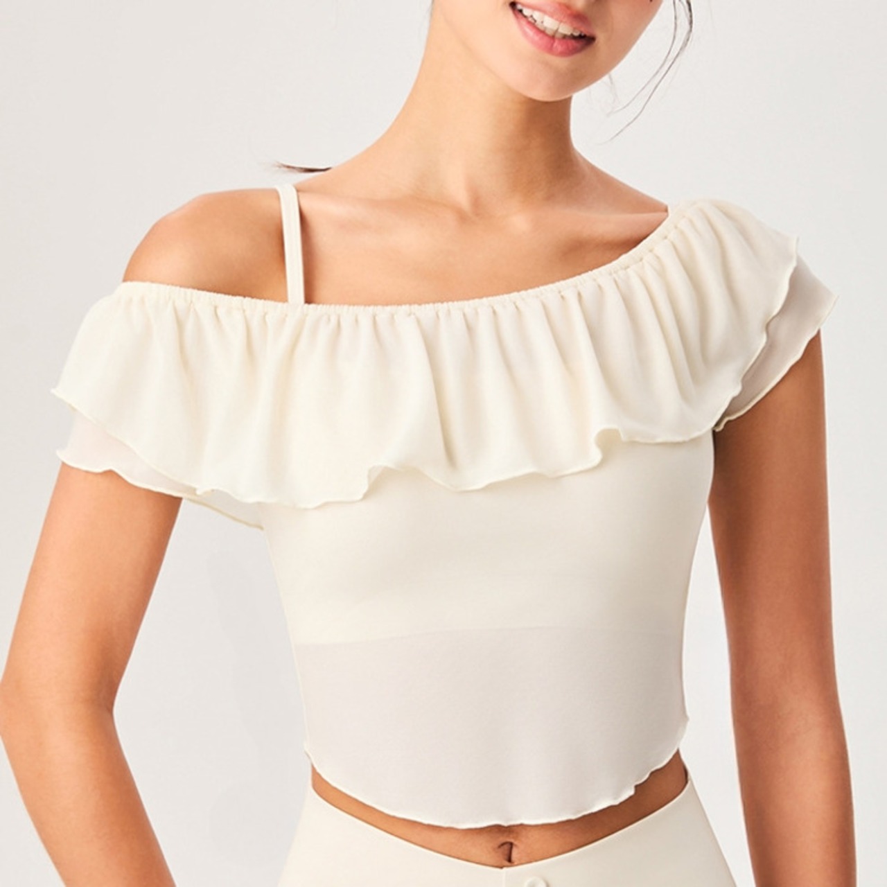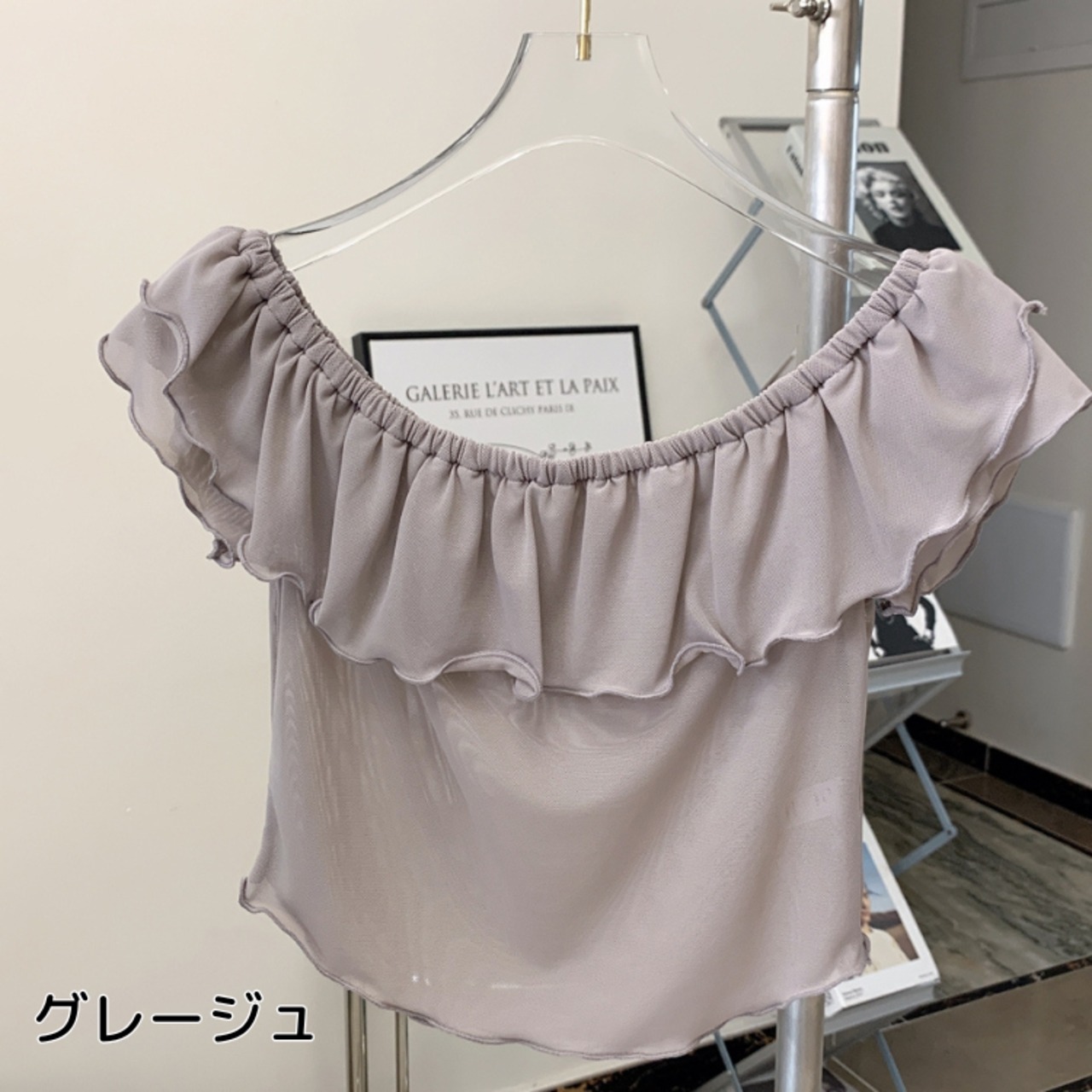 -------------------------------------------------------------------------- いますぐ!LINEお友だち追加で【クーポンGet】 ▶https://shop.99yoga-a.com/blog/2025/02/01/152128 注目!BEST SELLERはこちら ▶https://shop.99yoga-a.com/categories/6928766 -------------------------------------------------------------------------- フリルがあしらわれたデザインでフェミニンな印象の、クロップド丈のシフォントップス。 コンパクトな丈感なので、スタイルアップ効果も期待できます。 通常の広めラウンドネック、ワンショルダー、オフショルダーの3WAYで着回せるアイテムです。 ※インナーは含みません □サイズ(cm) 【S】胸囲:74 着丈:31.5 裾まわり:66 袖丈:11 袖口:29 【M】胸囲:78 着丈:32.5 裾まわり:70 袖丈:12 袖口:30 【L】胸囲:82 着丈:33.5 裾まわり:74 袖丈:13 袖口:31 ※海外製品のため1-3cm程度誤差のある場合がございます。 □カラー グレージュ ブラック ブルー オフホワイト □素材 95%:ナイロン 5%:ポリウレタン □お届けについて こちらの商品は海外店舗より直接発送となる為、ご入金から1週間〜3週間前後で発送致します。 □注意事項 ・タイミングによっては 商品在庫切れにより注文キャンセルとさせていただく恐れもございますので、予めご了承くださいませ。 ・こちらは輸入品となります。日本製とは検品基準が異なる為、新品未使用品でもごくわずかな汚れや傷がある場合もございます。 ・商品の色味は、お手持ちのスマートフォンの画面によって実物と若干異なる場合がございます。 ・イメージ違いやサイズ等、お客様都合による交換、返品、キャンセルは対応出来かねます。 -------------------------------------------------------------------------- ご購入前にこちらをお読みください →https://shop.99yoga-a.com/about --------------------------------------------------------------------------