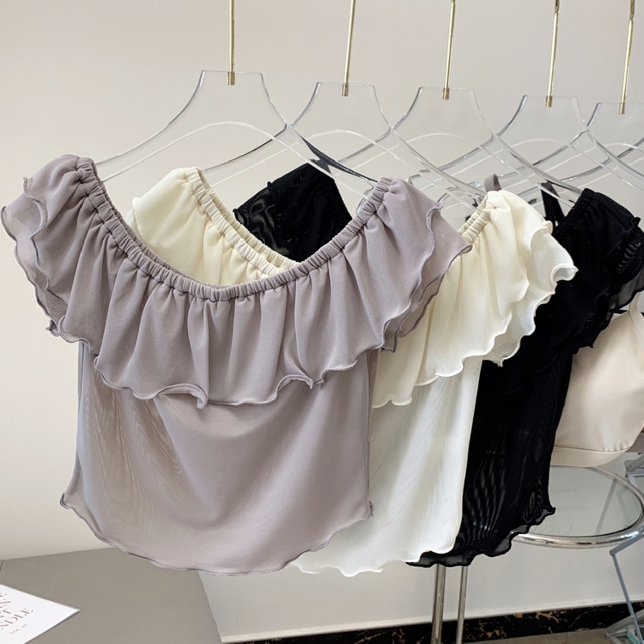 通常の広めラウンドネック、ワンショルダー、オフショルダーの3WAYで着回せるアイテムです。