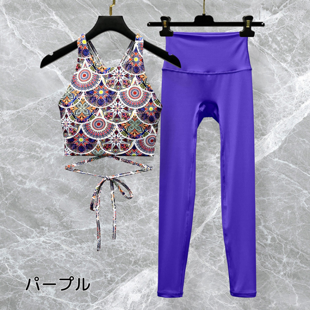 鮮やかな色使いが目を引くセットアップ。 クロップド丈のトップスは、アクティブな動きにも対応できるよう設計されており、様々なワークアウトシーンで活躍します。 ハイウエストレギンスは、気になるお腹周りをカバーしつつ、スタイルアップ効果も期待できます。 □サイズ(cm) トップス 【S】胸囲:65 着丈:33 ウエスト:55 【M】胸囲:69 着丈:34 ウエスト:59 【L】胸囲:73 着丈:35 ウエスト:63 レギンス 【S】ウエスト:52 ヒップ:68 パンツ丈:84 【M】ウエスト:56 ヒップ:72 パンツ丈:85 【L】ウエスト:60 ヒップ:76 パンツ丈:86 ※海外製品のため1-3cm程度誤差のある場合がございます。 □カラー グリーン パープル ブルー □素材 主素材:ナイロン □お届けについて こちらの商品は海外店舗より直接発送となる為、ご入金から1週間〜3週間前後で発送致します。 □注意事項 ・タイミングによっては、商品在庫切れによりご注文をキャンセルさせていただく場合がございます。 ・こちらは輸入品のため、日本製品とは検品基準が異なります。新品未使用品でも、わずかな汚れや小さな傷が見られる場合がございます。 ・商品の色味は、ご覧になる端末や画面設定により、実物と多少異なって見える場合がございます。 ・イメージ違い、サイズ違いなどお客様都合による返品・交換・キャンセルはお受けできませんので、あらかじめご了承ください。 ▶ご購入前にこちらをお読みください https://shop.99yoga-a.com/about -------------------------------------------------------------------------- ▶いますぐ!LINEお友だち追加で【クーポンGet】 https://shop.99yoga-a.com/blog/2025/02/01/152128 ▶注目!BEST SELLERはこちら https://shop.99yoga-a.com/categories/6928766 --------------------------------------------------------------------------