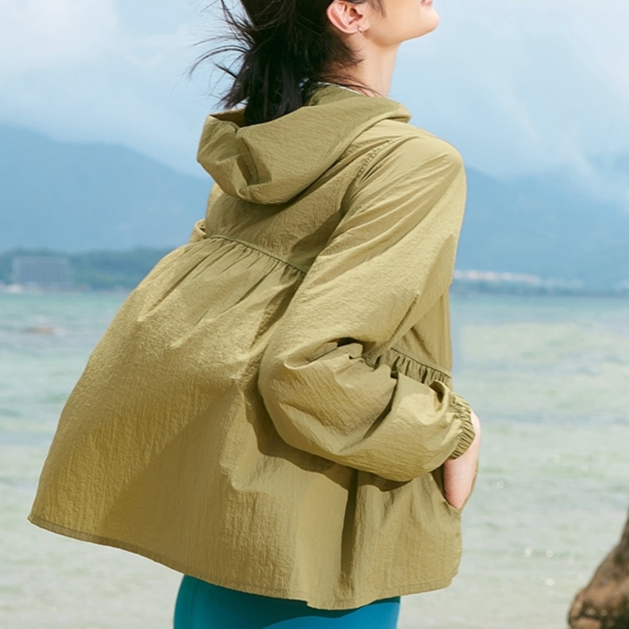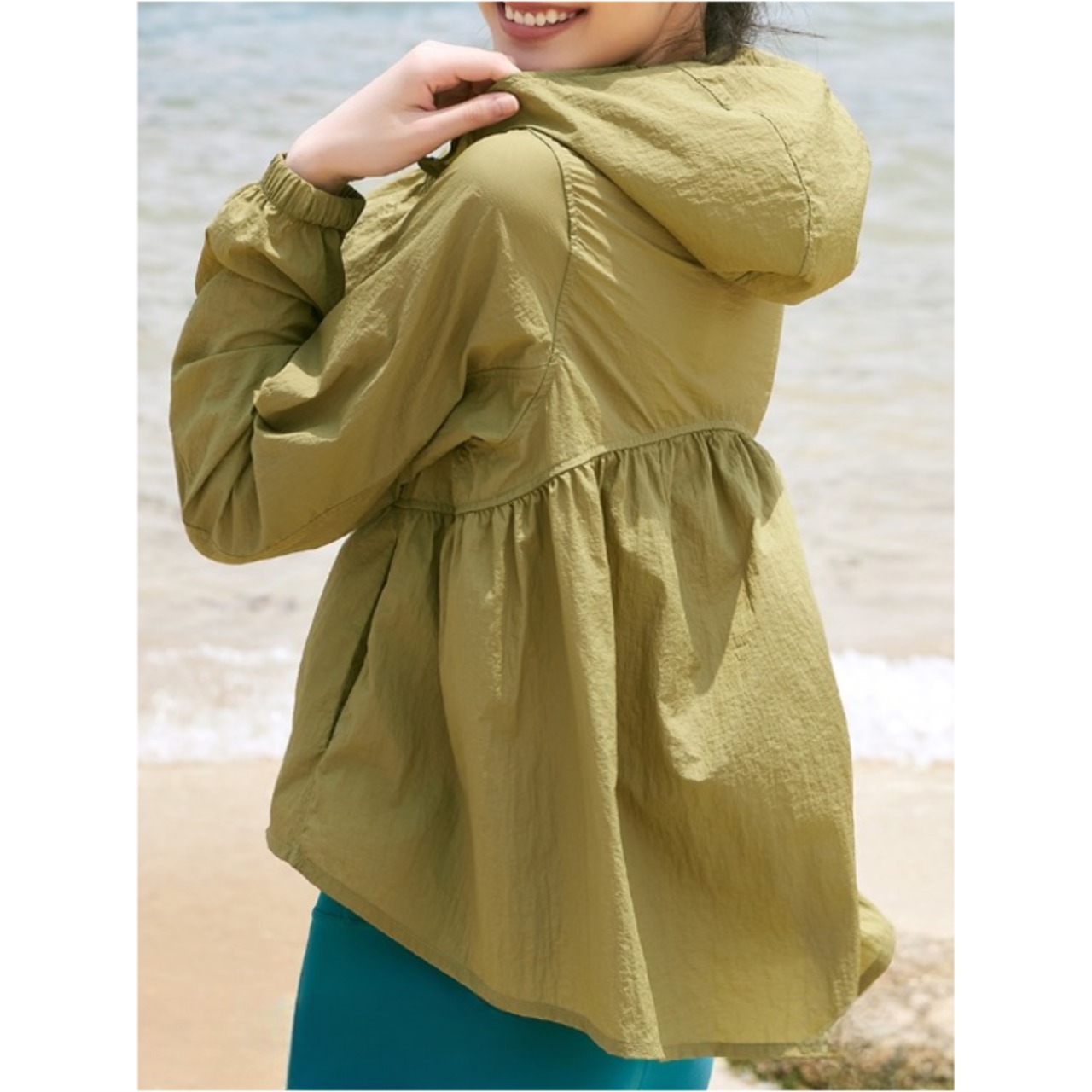 日差しが気になる季節にぴったりのフード付きジャケット。