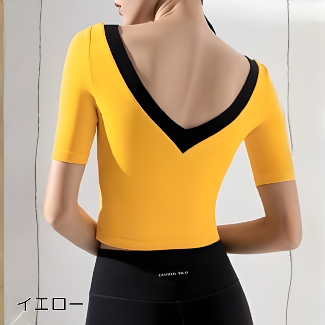 アクティブなシーンに最適なトップスです。 Vネックがデコルテを美しく演出し、五分袖は腕をすっきりと見せてくれます。 クロップド丈なので、ハイウエストのボトムスと合わせればスタイルアップ効果も期待できます。 ワークアウトはもちろん、普段使いにもおすすめです。 □サイズ(cm) 【S】肩幅:31 胸囲:64 着丈:41 袖丈:25 【M】肩幅:32 胸囲:68 着丈:42 袖丈:26 【L】肩幅:33.5 胸囲:73 着丈:43 袖丈:27 ※海外製品のため1-3cm程度誤差のある場合がございます。 □カラー イエロー ブラック レッド グリーン □素材 80%:ナイロン 20%:ポリウレタン □お届けについて こちらの商品は海外店舗より直接発送となる為、ご入金から1週間〜3週間前後で発送致します。 □注意事項 ・タイミングによっては、商品在庫切れによりご注文をキャンセルさせていただく場合がございます。 ・こちらは輸入品のため、日本製品とは検品基準が異なります。新品未使用品でも、わずかな汚れや小さな傷が見られる場合がございます。 ・商品の色味は、ご覧になる端末や画面設定により、実物と多少異なって見える場合がございます。 ・イメージ違い、サイズ違いなどお客様都合による返品・交換・キャンセルはお受けできませんので、あらかじめご了承ください。 ▶ご購入前にこちらをお読みください https://shop.99yoga-a.com/about -------------------------------------------------------------------------- ▶いますぐ!LINEお友だち追加で【クーポンGet】 https://shop.99yoga-a.com/blog/2025/02/01/152128 ▶注目!BEST SELLERはこちら https://shop.99yoga-a.com/categories/6928766 --------------------------------------------------------------------------