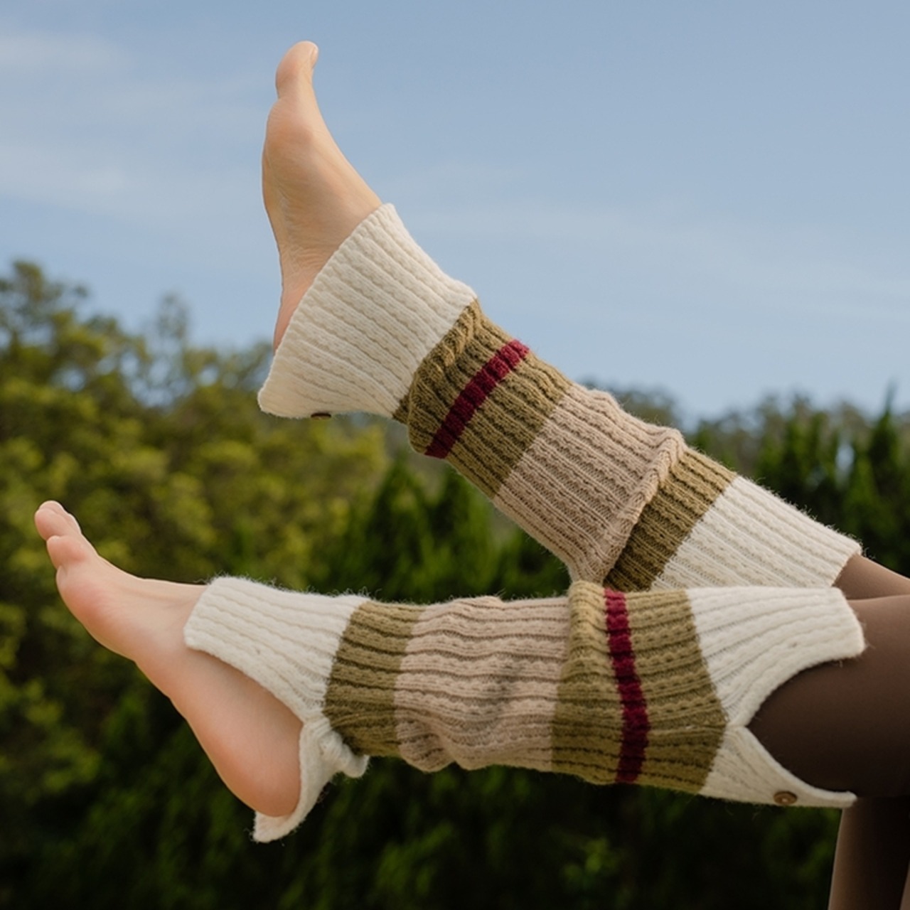マルチボーダー柄が足元にアクセントを添えるレッグウォーマー。