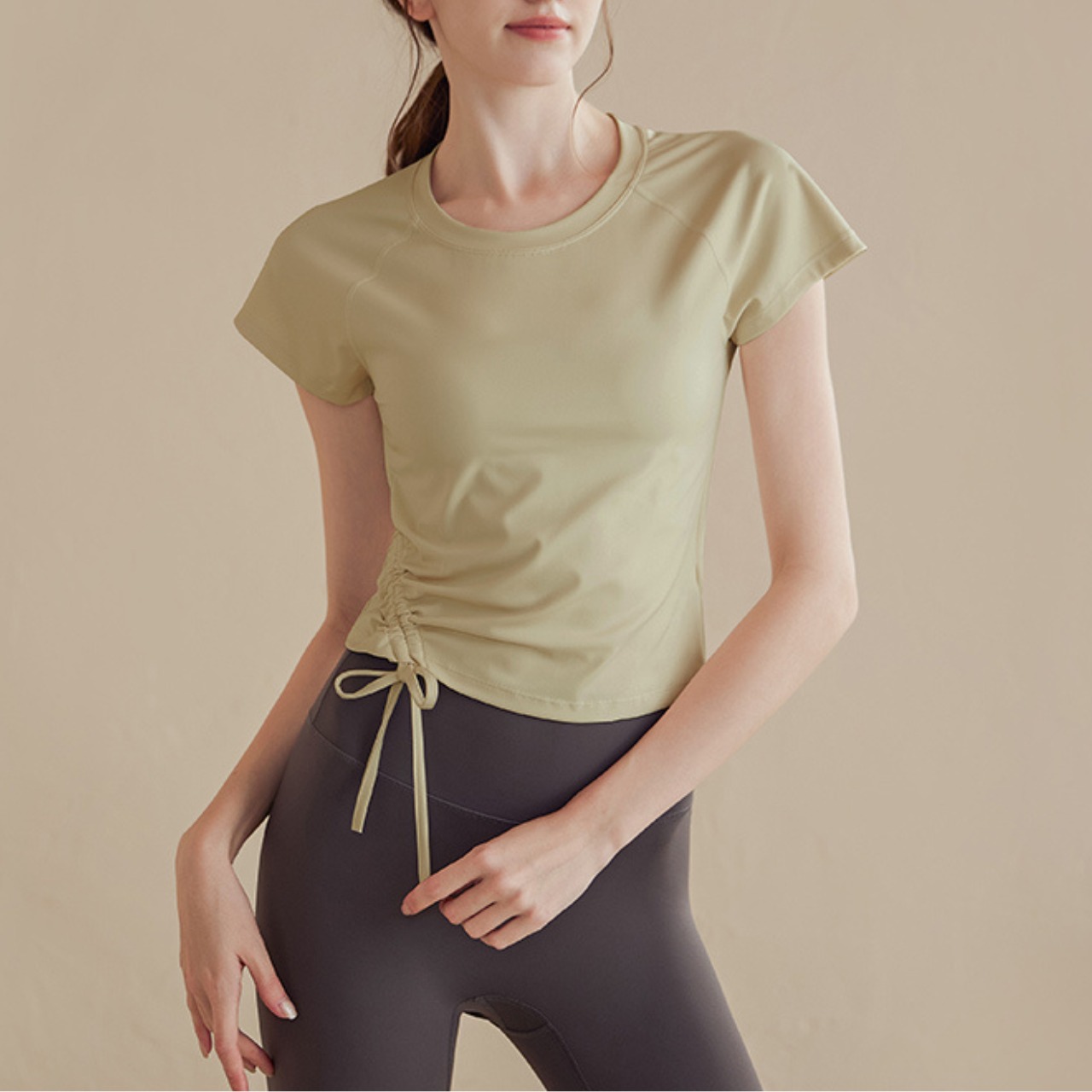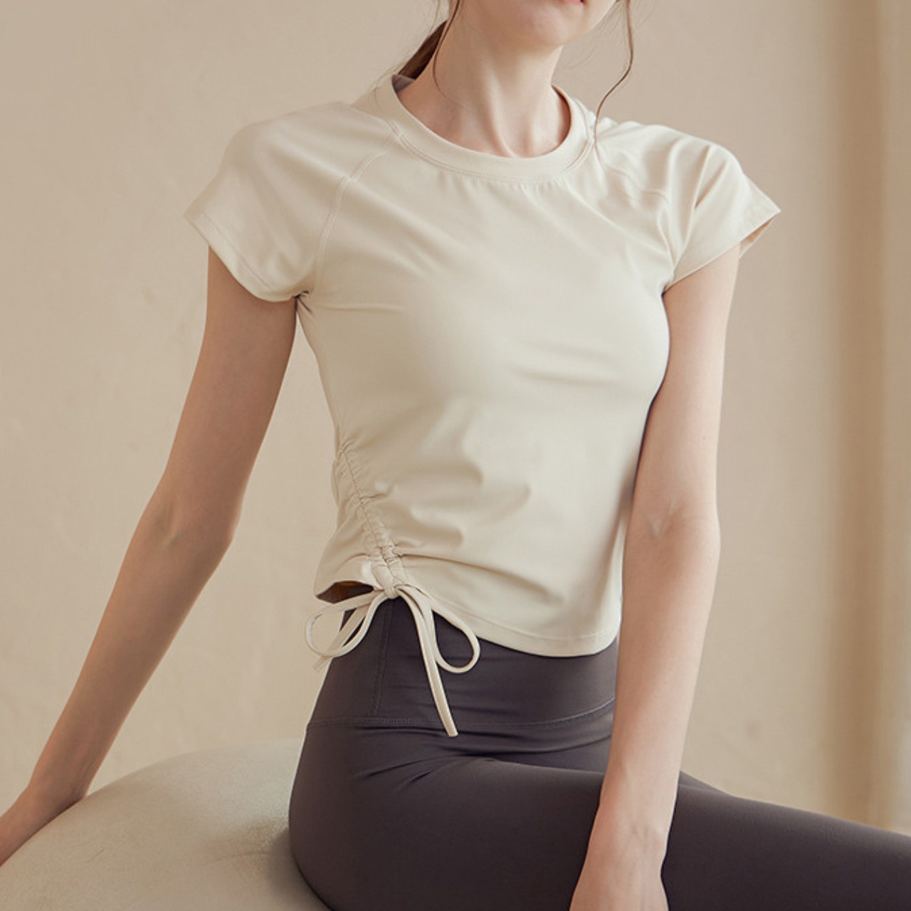 -------------------------------------------------------------------------- いますぐ!LINEお友だち追加で【クーポンGet】 ▶https://shop.99yoga-a.com/blog/2025/02/01/152128 注目!BEST SELLERはこちら ▶https://shop.99yoga-a.com/categories/6928766 -------------------------------------------------------------------------- 快適な着心地とスタイリッシュなデザインを両立した半袖トップス。 クルーネックのデザインはどんなボトムスとも合わせやすく、ヨガやピラティス、その他のワークアウトにも最適です。 サイドのリボンが女性らしいアクセントをプラスし、動きやすさを損なうことなくおしゃれなスタイルを演出します。 □サイズ(cm) 【S】胸囲:72 着丈:46 裾まわり:64 【M】胸囲:76 着丈:47 裾まわり:68 【L】胸囲:80 着丈:48 裾まわり:72 【XL】胸囲:84 着丈:49 裾まわり:76 ※海外製品のため1-3cm程度誤差のある場合がございます。 □カラー オフホワイト ブラウン カーキ □素材 ナイロン:75% ポリウレタン:25% □お届けについて こちらの商品は海外店舗より直接発送となる為、ご入金から1週間〜3週間前後で発送致します。 □注意事項 ・タイミングによっては 商品在庫切れにより注文キャンセルとさせていただく恐れもございますので、予めご了承くださいませ。 ・こちらは輸入品となります。日本製とは検品基準が異なる為、新品未使用品でもごくわずかな汚れや傷がある場合もございます。 ・商品の色味は、お手持ちのスマートフォンの画面によって実物と若干異なる場合がございます。 ・イメージ違いやサイズ等、お客様都合による交換、返品、キャンセルは対応出来かねます。 -------------------------------------------------------------------------- ご購入前にこちらをお読みください →https://shop.99yoga-a.com/about --------------------------------------------------------------------------