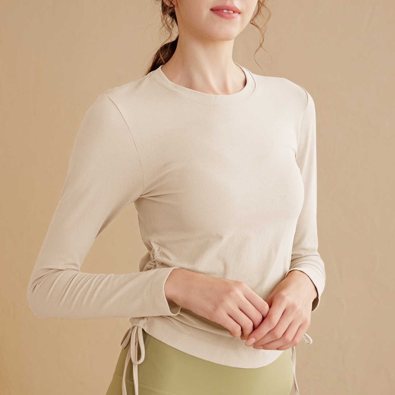 ハイウエストボトムスと合わせればスタイルアップ効果も期待でき、ヨガなどのアクティブなシーンにも最適です。